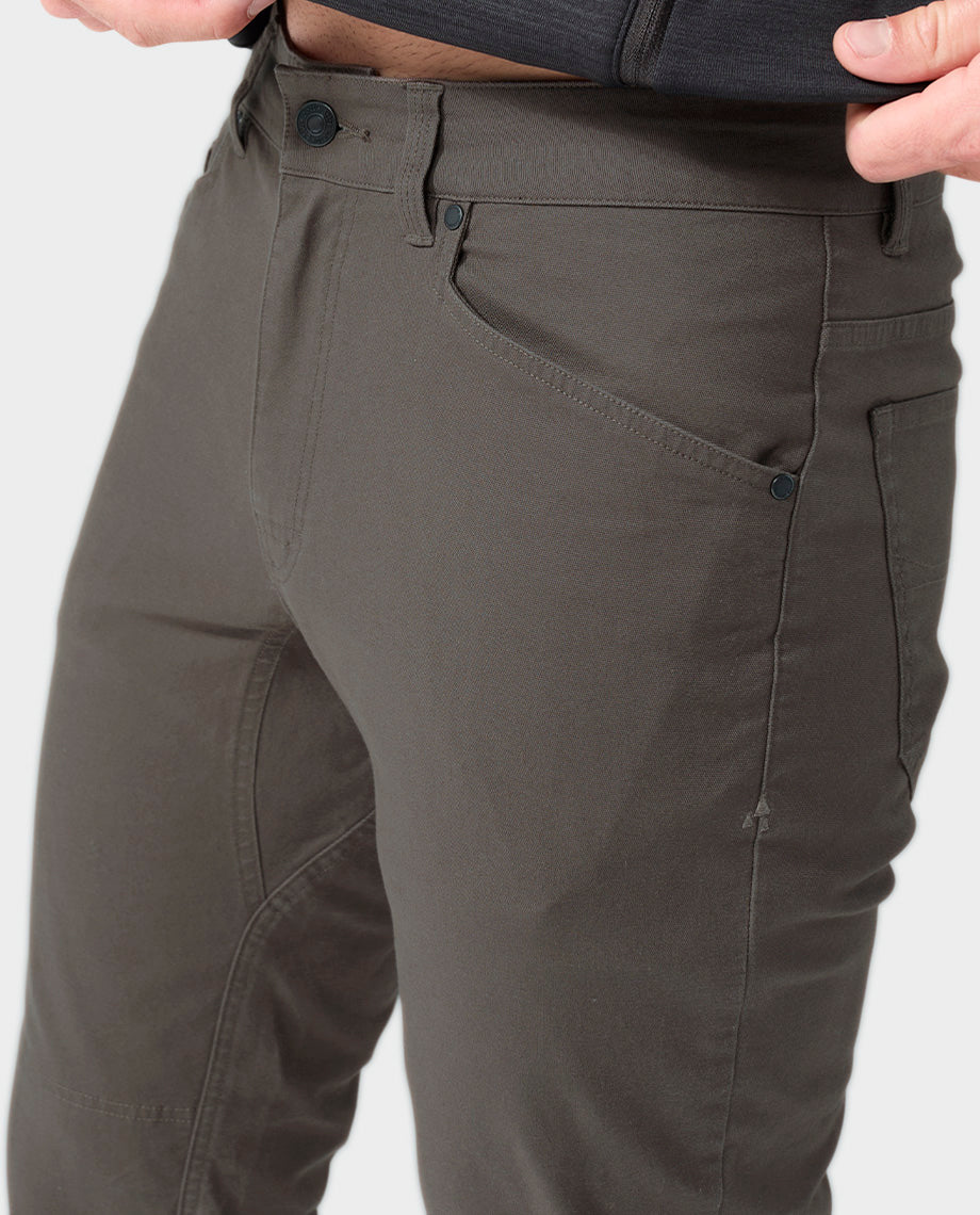 Tough. reinforced organic stretch cotton and double-layered knees are ready for the ranch or the road.