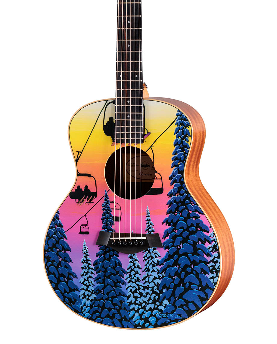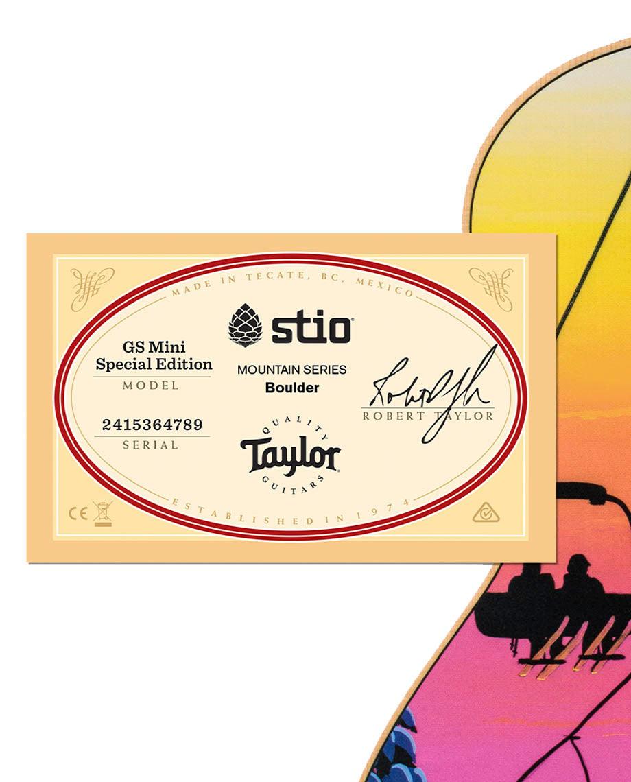 As part of our limited Stio (ft. Taylor Guitars) collab. Colorado-based artist and elementary art teacher Jesse Crock’s original design captures a perfect moment on an annual ski trip with friends. when the sky exploded with color on the final run.